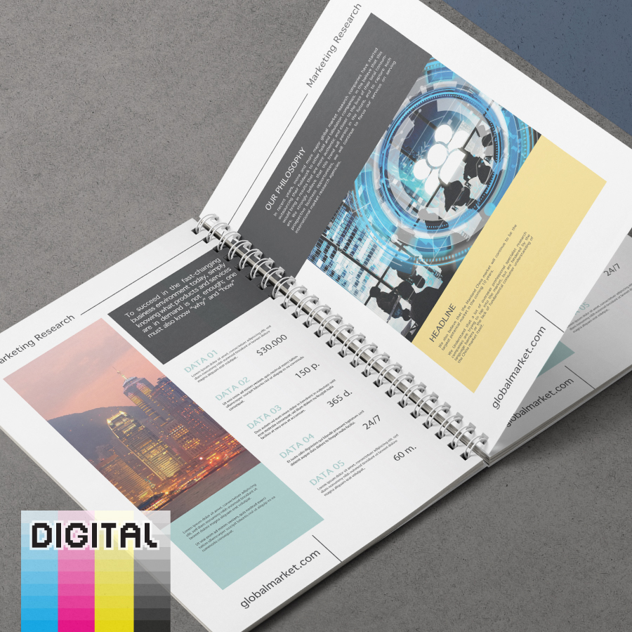 數碼鐵圈裝訂,180°平翻,適合教學用 Notebook、產品說明書、展覽活動紀念品、設計作品集。印多多 PrintMallNow 專業書本印刷,香港專人跟進。小數量印刷,適用培訓、會議手冊,易於平攤閱讀。